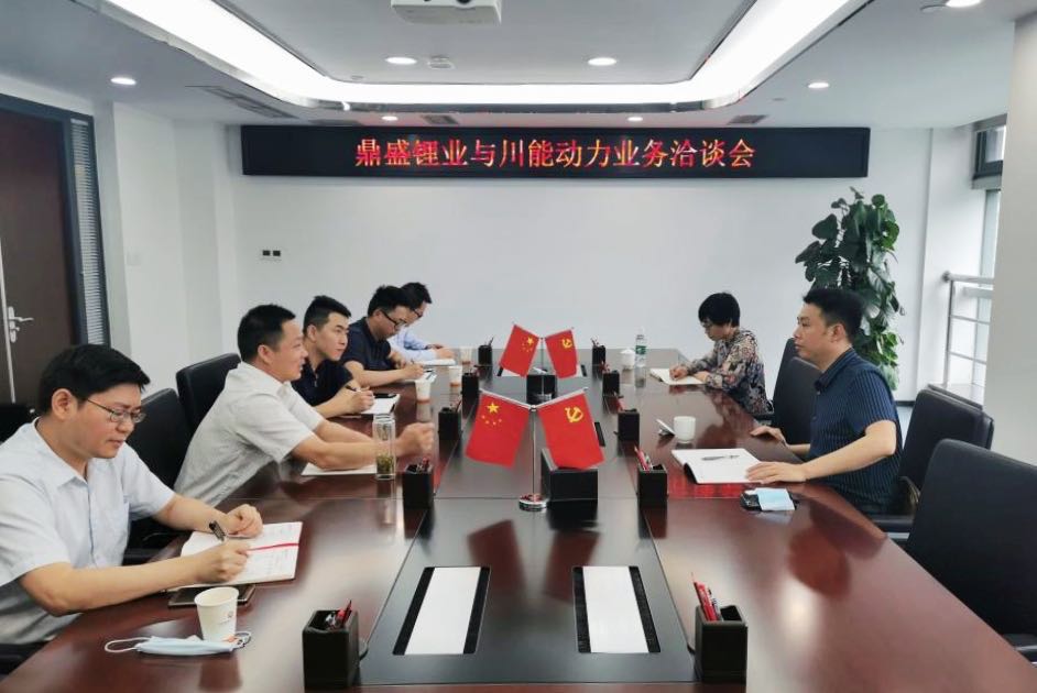 2020年6月1日,四川能投鼎盛鋰業(yè)有限公司(以下簡(jiǎn)稱:鼎盛鋰業(yè))副總經(jīng)理謝長(zhǎng)輝一行到訪川能動(dòng)力開(kāi)展業(yè)務(wù)交流,川能動(dòng)力黨委委員、副總經(jīng)理鄭小強(qiáng)熱情接待。