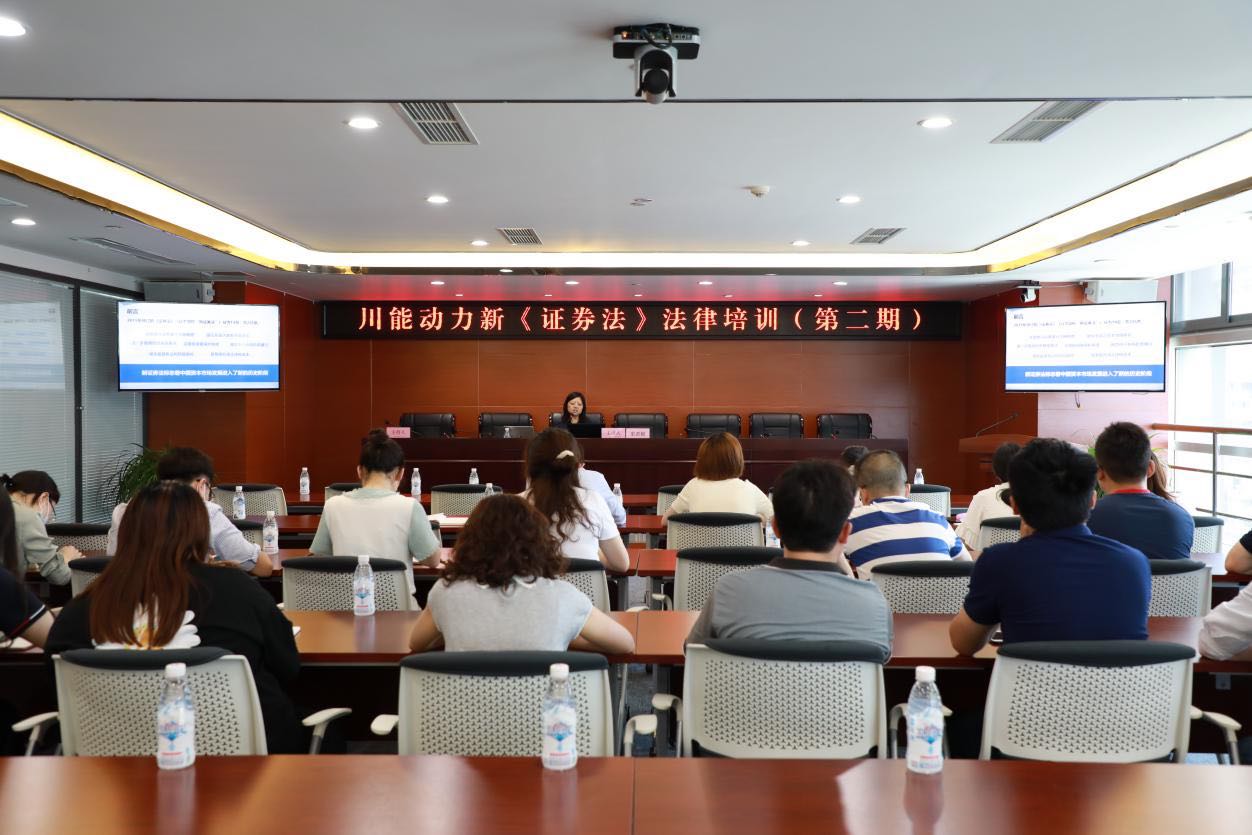 為持續(xù)加強(qiáng)公司員工關(guān)于新《證券法》的法律認(rèn)識(shí),領(lǐng)會(huì)證券市場監(jiān)管新規(guī),以新規(guī)則為導(dǎo)向規(guī)范上市公司干部員工行為,2020年6月23日,川能動(dòng)力邀請(qǐng)北京德恒(成都)律師事務(wù)所合伙人史君艷律師,以《新<證券法>法律知識(shí)培訓(xùn)》為題,面向川能動(dòng)力與川能風(fēng)電,開展了2020年第二期新《證券法》法律知識(shí)培訓(xùn)。川能動(dòng)力、川能風(fēng)電干部員工共計(jì)35人參加了此次培訓(xùn)。